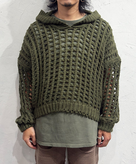 VINTAGE - CROPPED MESH KNIT HOODIE