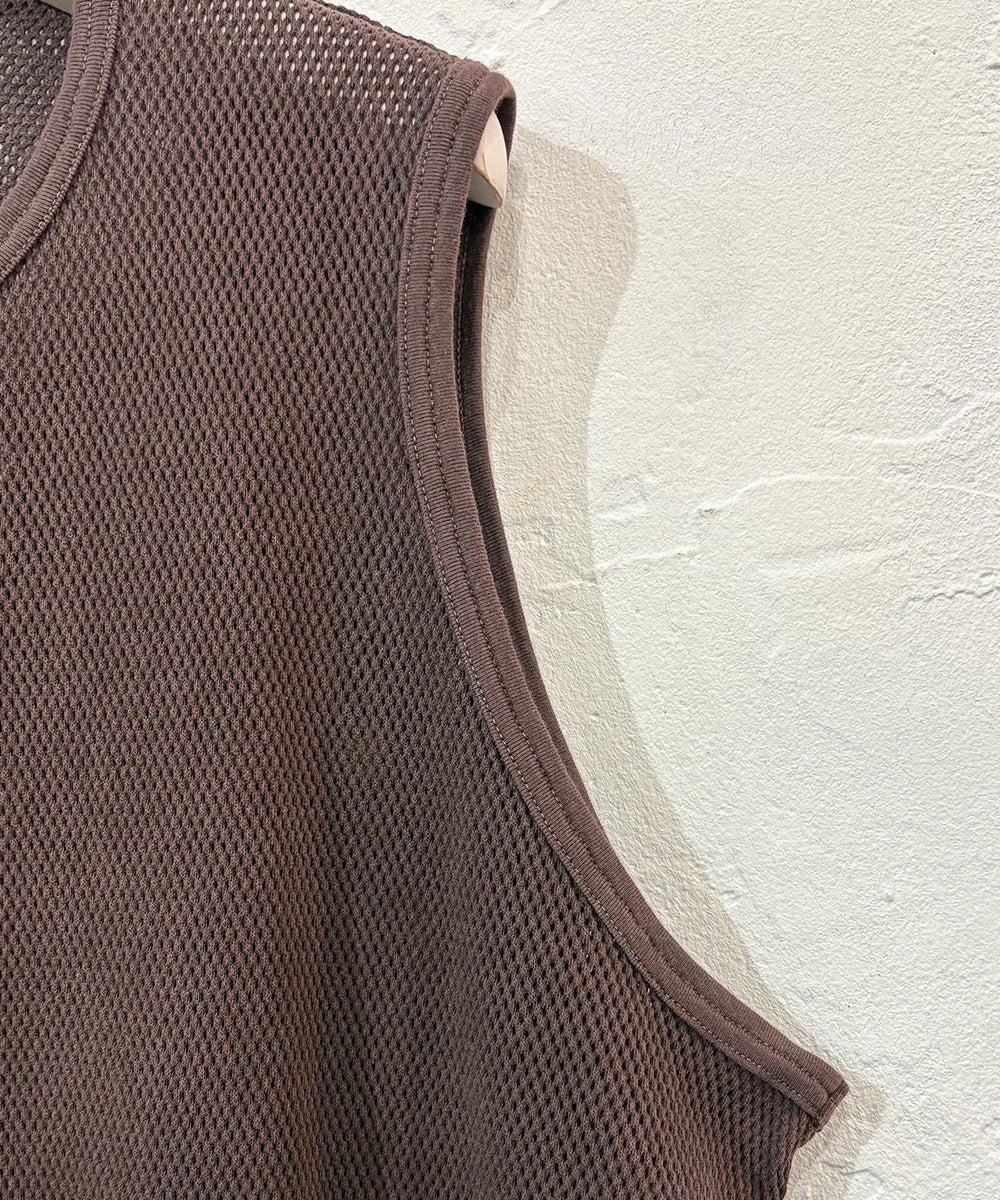 ANDER完全オリジナルのメッシュ生地を使用した、スリーブレスカットソー。