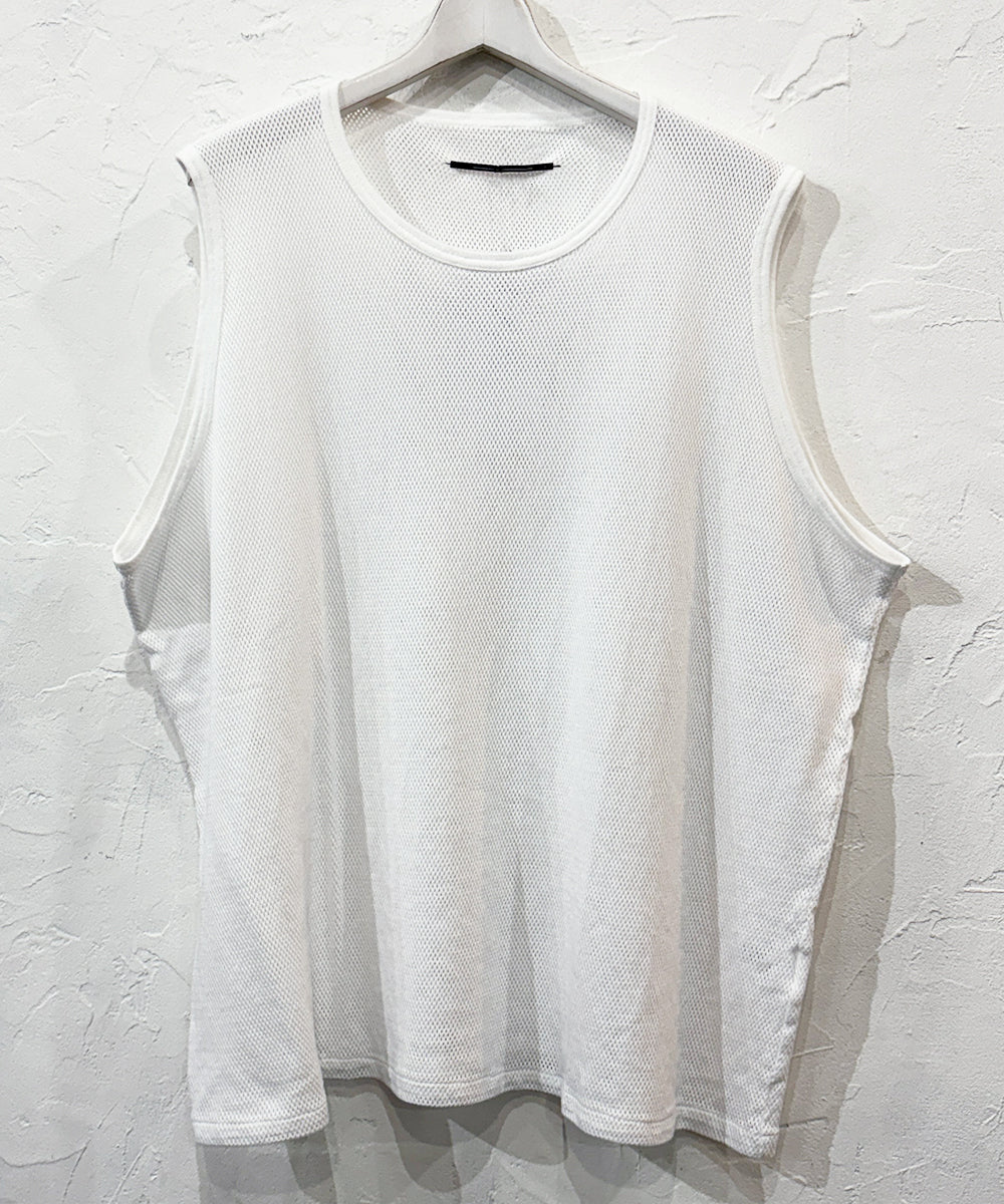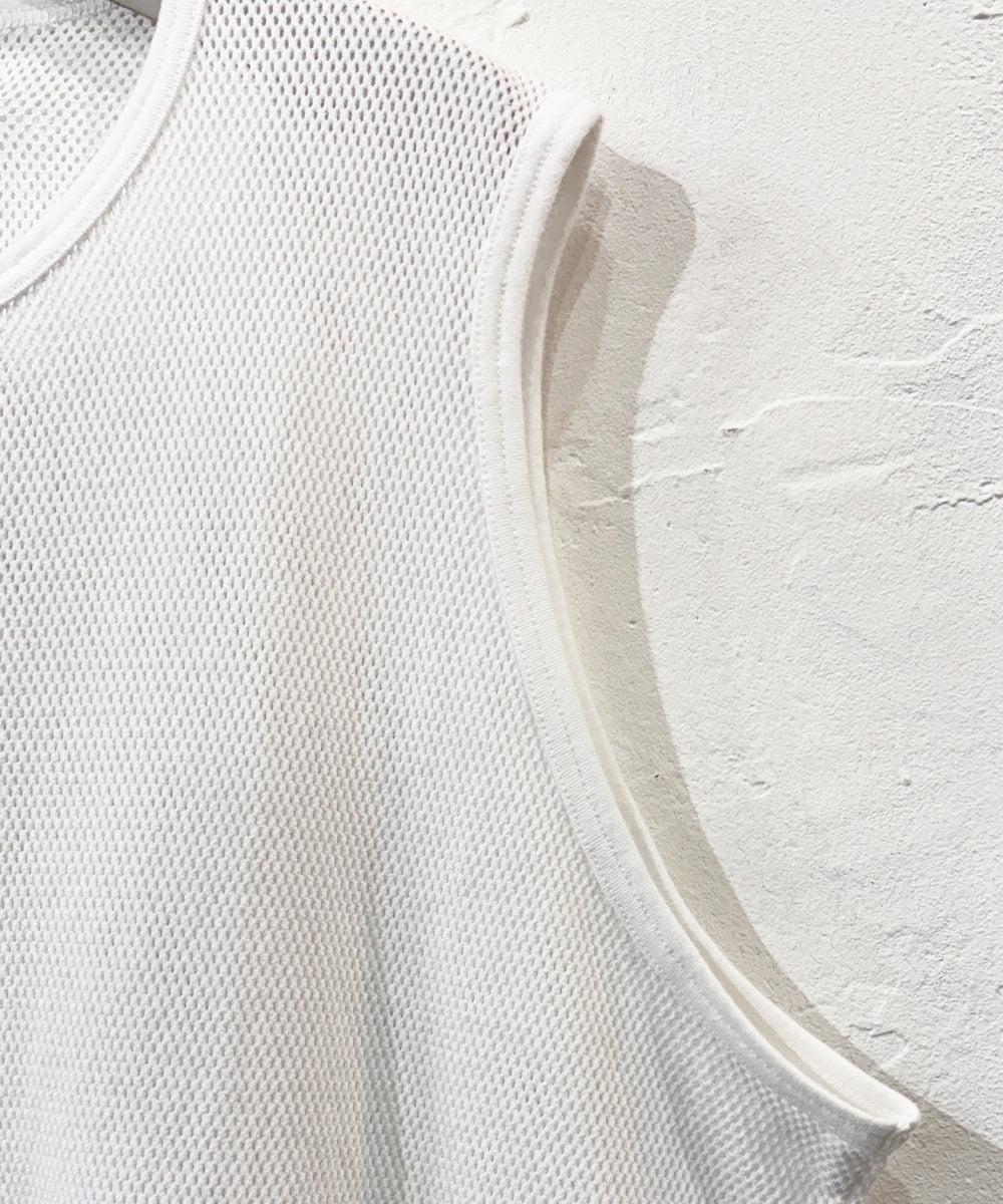 ANDER完全オリジナルのメッシュ生地を使用した、スリーブレスカットソー。
