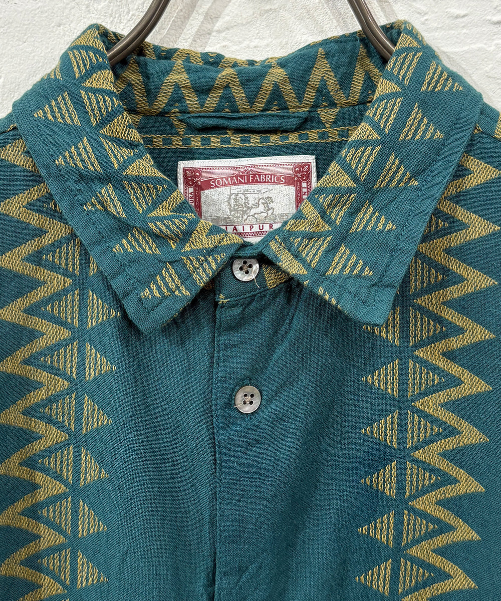 VINTAGE - SOMANI FABRIC GEOMETRIC PATTERN SHIRT GREEN