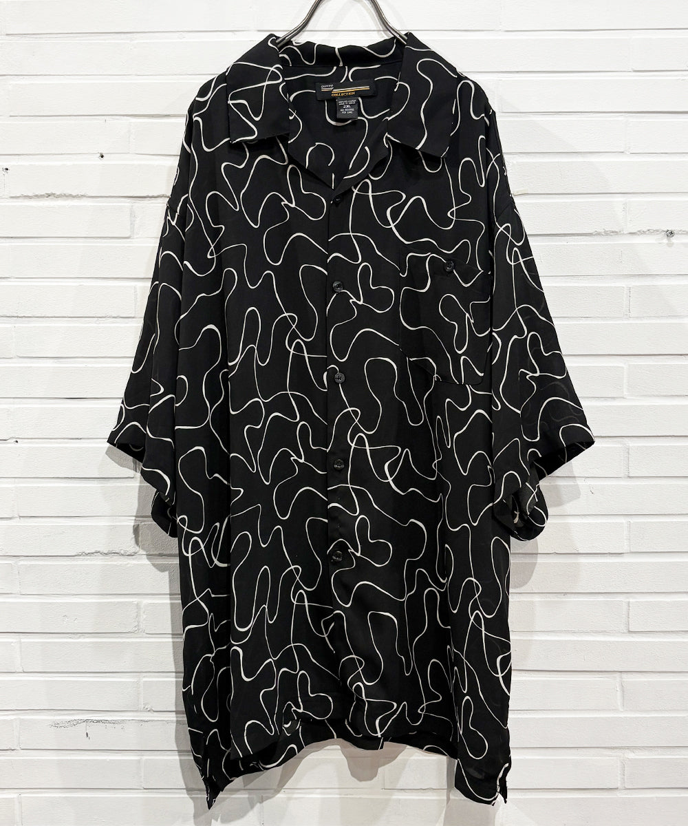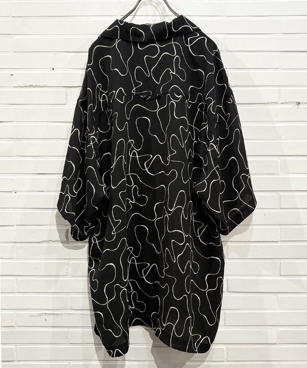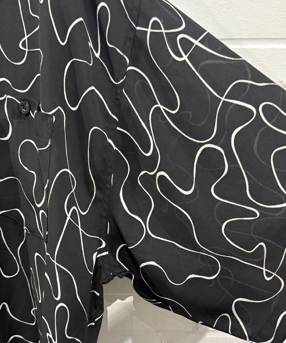 VINTAGE - WAVE PATTERN CHIFFON OPEN-COLLAR SHIRT