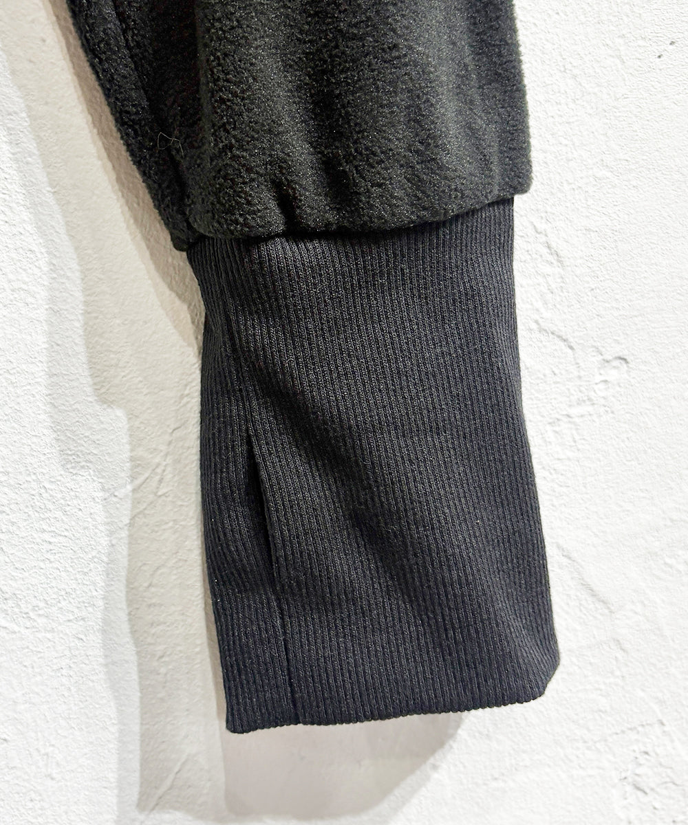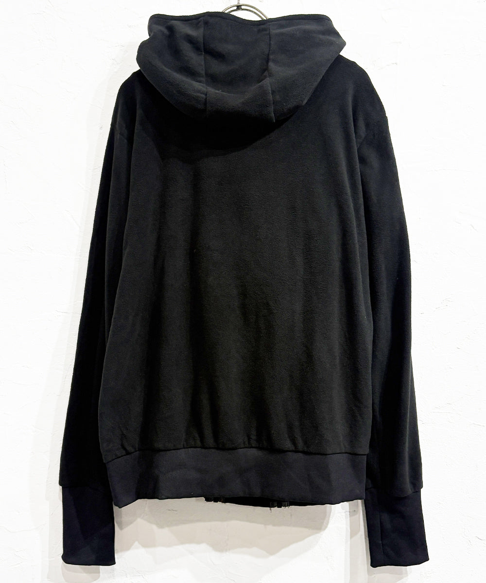 起毛感のある柔らかなフリース素材を採用しながら、パターンやジップワークによって立体的なデザインになっています。テック・モード・グランジすべての要素を兼ね備えた一着です。