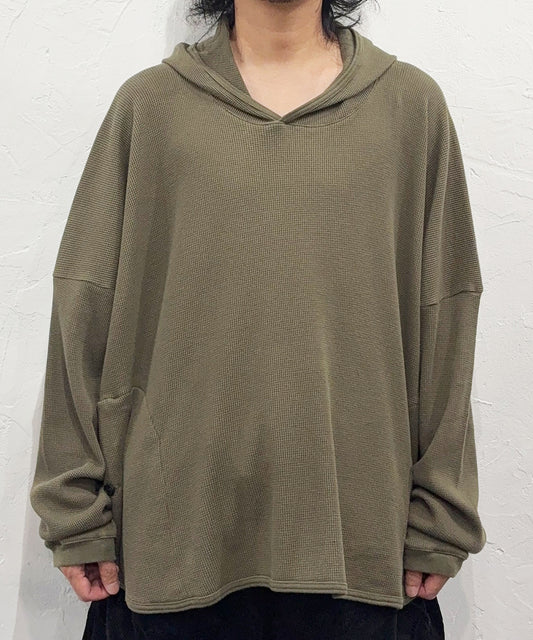 O PROJECT - WIDE FIT HOODED WAFFLE / ARMY GREEN
