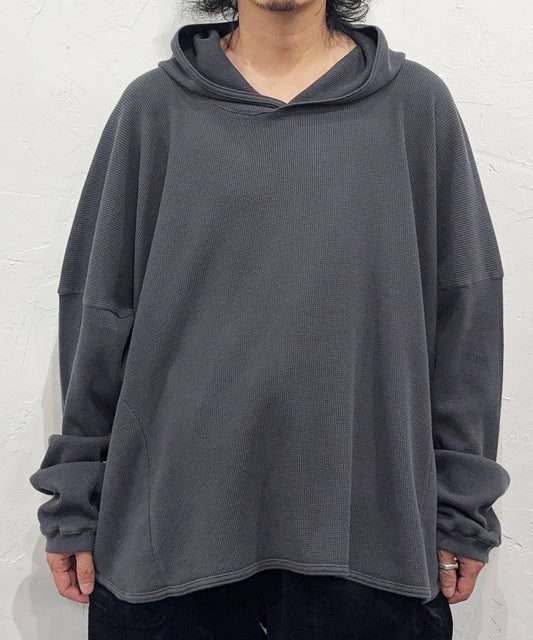 O PROJECT - WIDE FIT HOODED WAFFLE / ANTHRACITE