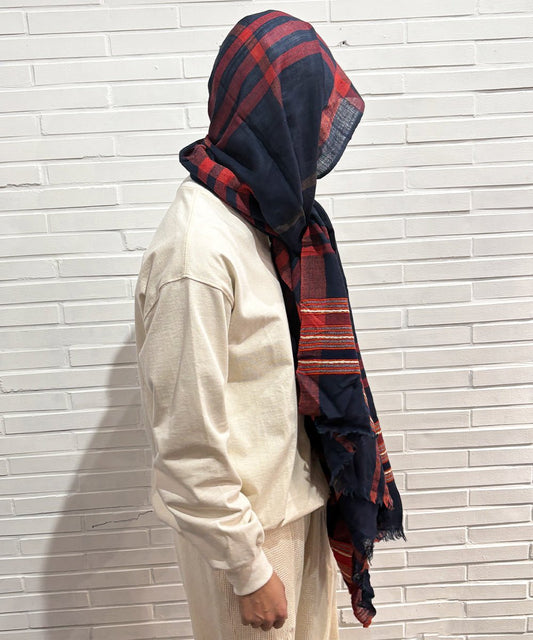 HAND WOVEN STOLE - Embroidery wool NAVY