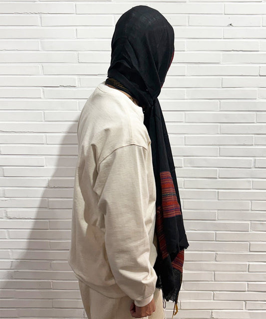 HAND WOVEN STOLE - Embroidery wool NAVY BLACK