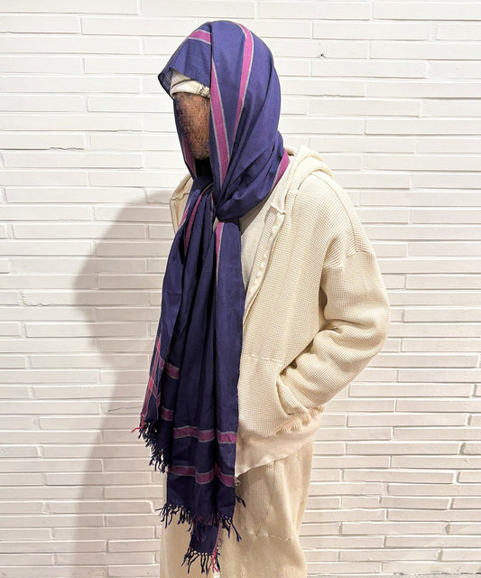 HAND WOVEN STOLE - Stripe wool PURPLE