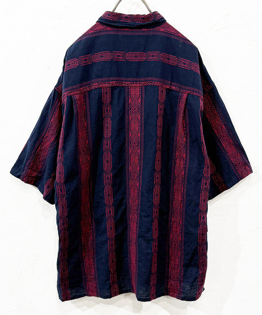 VINTAGE - SOMANI FABRIC GEOMETRIC PATTERN SHIRT NAVY