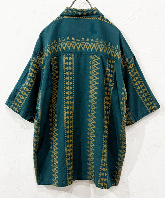 VINTAGE - SOMANI FABRIC GEOMETRIC PATTERN SHIRT GREEN