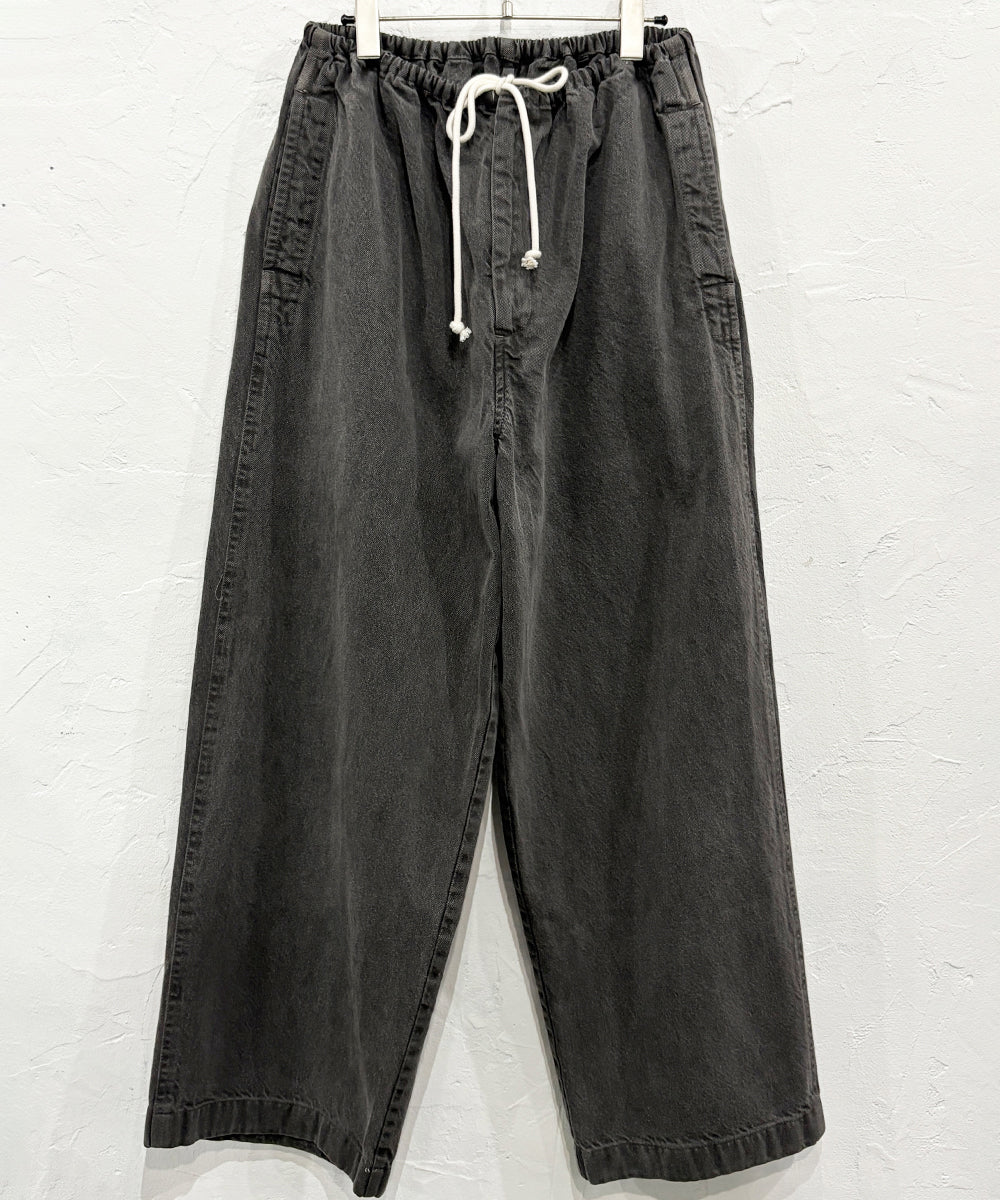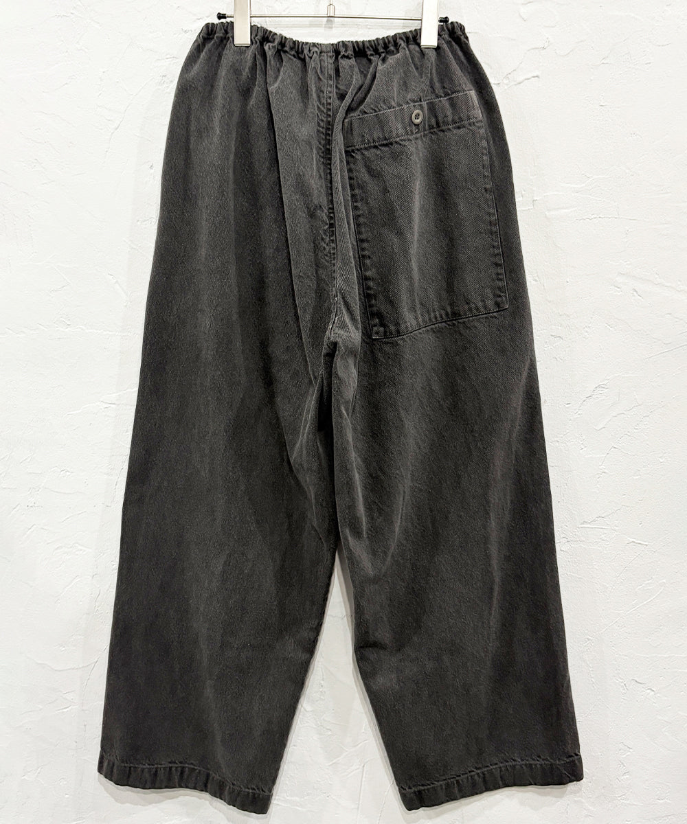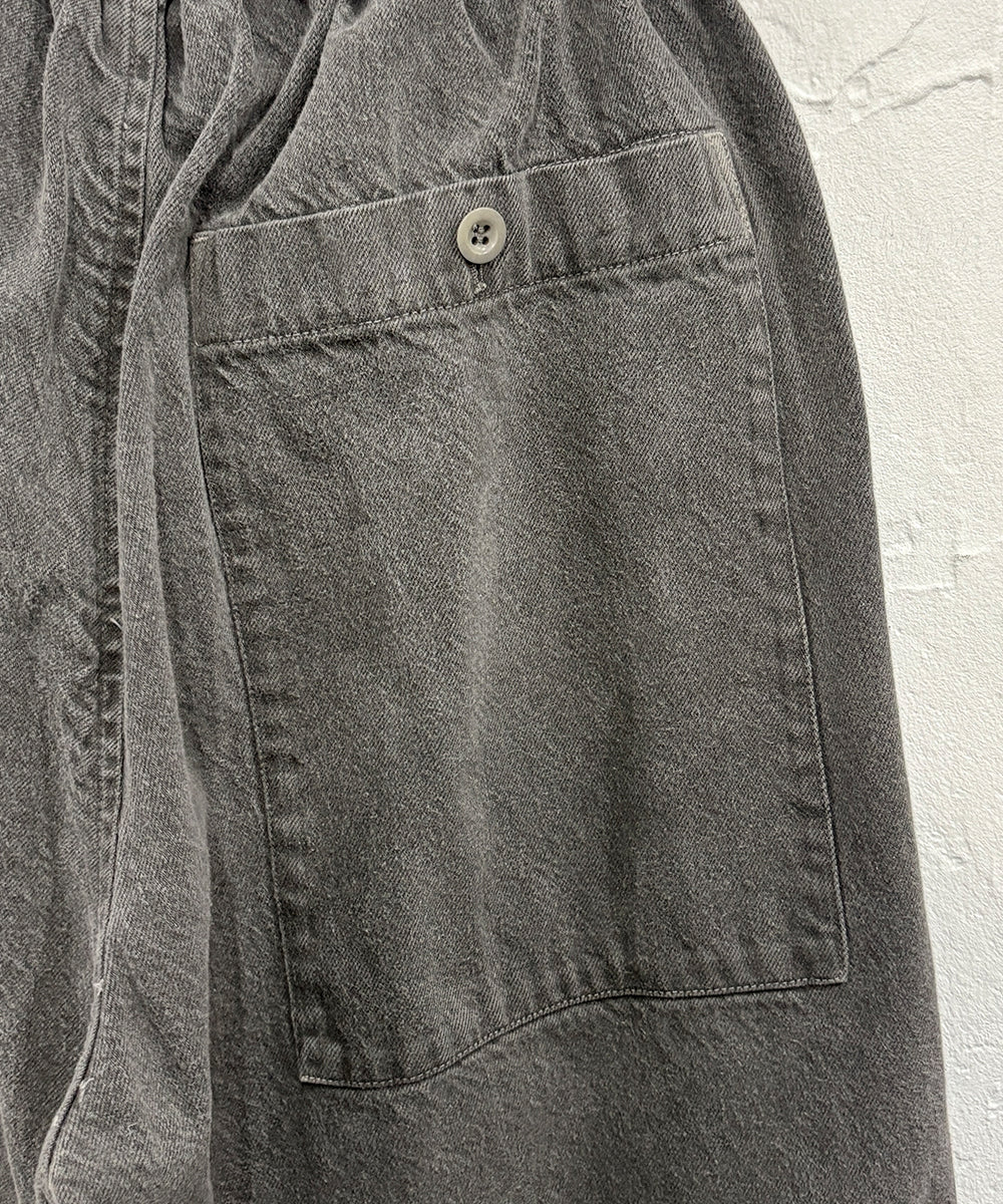 ワイドストレートレッグ、深めの股上、サイドシームポケット、大型バックポケット